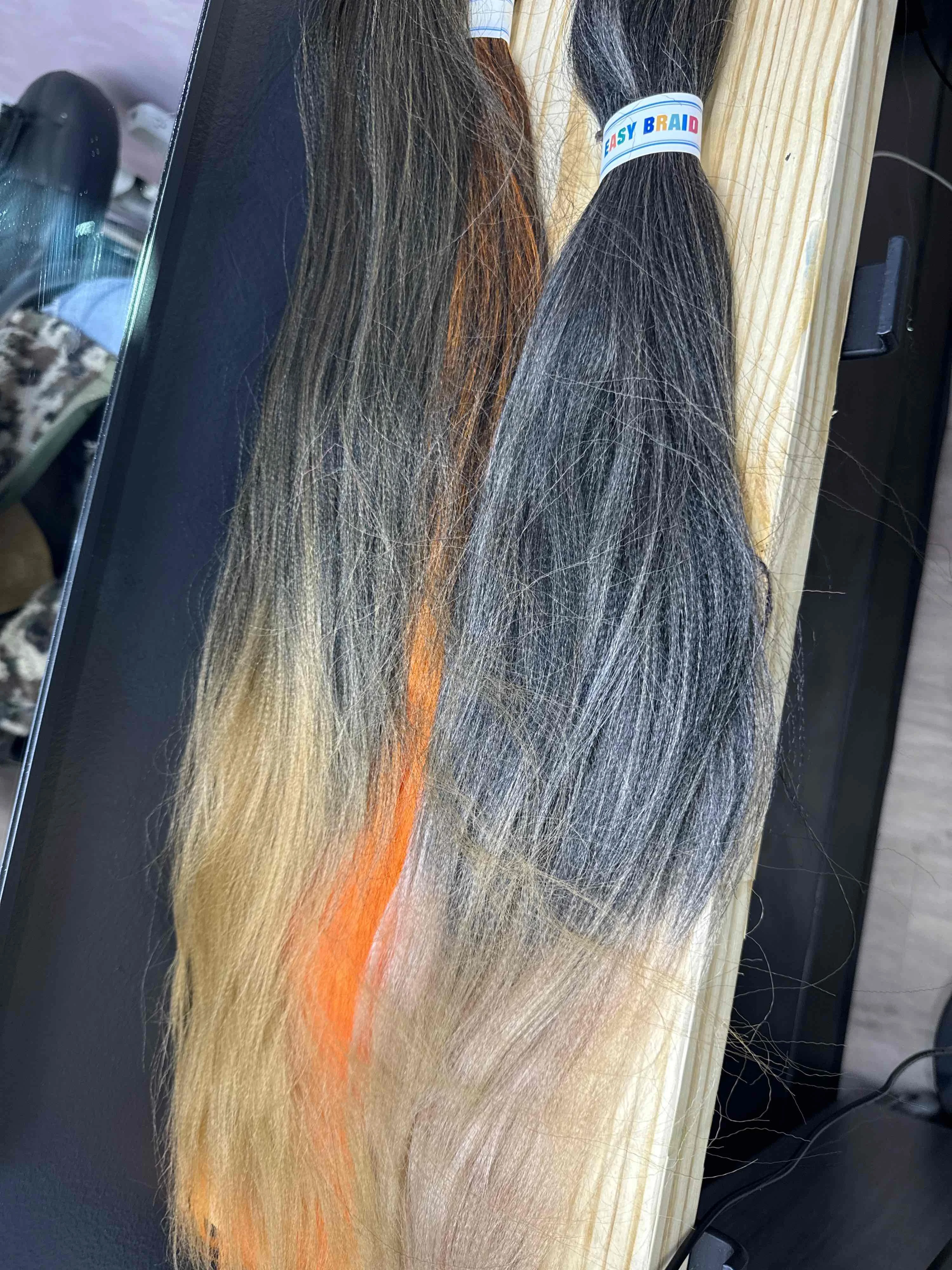A brace just like the Ezi Braidng Hair I was looking for something that braids more like the expression hair, although it feels lightweight. Once you braided it and dip it in hot water the Braidng scrunchies up, making the appearance of the Braidng Hair look thicker or fatter as you can see in the photo whereas the expression, Braidng Hair dips slimmer and it does not look bigger so that is my only issue with this Hair. I’m hoping that the supplier can send me something closer to expression and less like Ezi Braidng because of how they react in hot water.